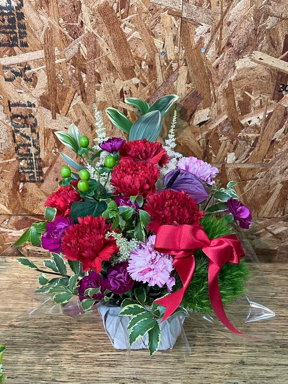 母の日には、カーネーションを豊かに使ったアレンジメントを送りましょう!